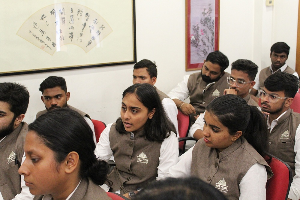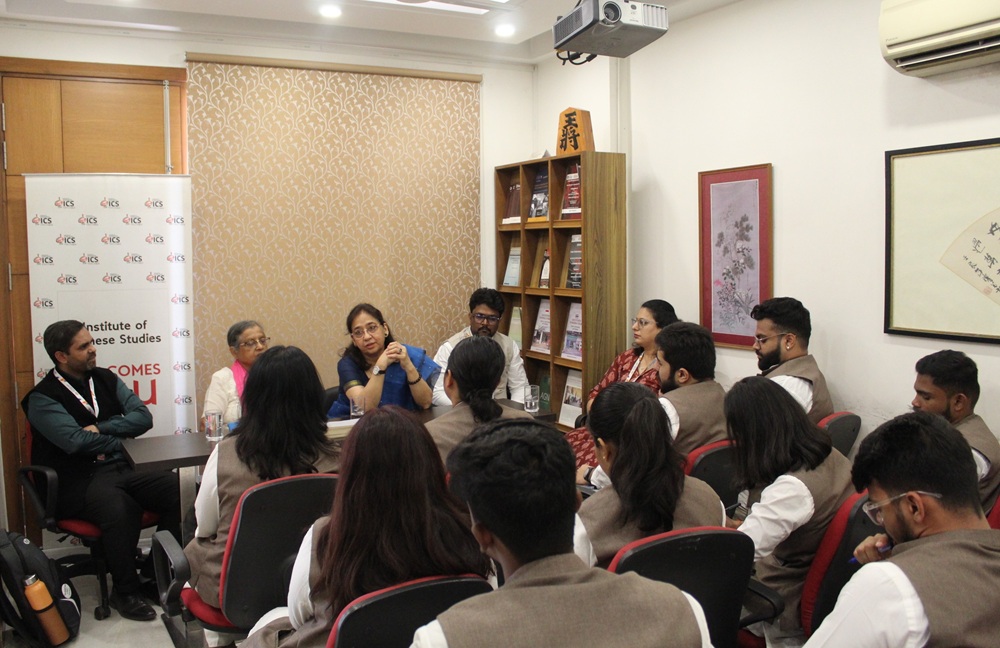As part of a national academic study tour to New Delhi, students of the Master’s Programme in Political Leadership and Government (MPG) from the MIT School of Government (MIT-SOG), MIT-World Peace University, Pune visited the Institute of Chinese Studies (ICS), New Delhi. The delegation of students was led by Dr. Abhijeet Dhere, Program Director, MIT School of Government, who was accompanied by Mr. Chinmay Bendre, Senior Research Associate, and Ms. Pradnya Nene, Admissions and Student Coordinator, MIT School of Government. The faculty and students interacted with senior faculty of the ICS, which included Prof. Alka Acharya, Director, and Prof. Sreemati Chakrabarti, Chairperson, ICS. The delegation engaged the ICS faculty with questions pertaining to the work carried out by the Institute, and historical and recent developments in India-China relations, leading to a fruitful and insightful discussion.